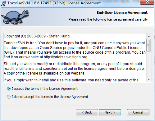 运行TortoiseSVN-1.6.6.17493-win32-svn-1.6.6.msi程序, 开始安装