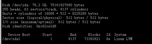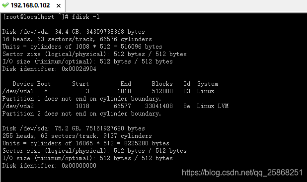 9.此时fdisk -l 发现/dev/sda 下多出了/dev/sda1分区