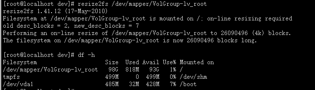 说明是文件系统问题 查看文件系统类型:mount |grep root 发现是xfs的话则要把resize2fs改为xfs_growfs 即xfs_growfs /dev/mapper/VolGroup-lv_root:下图是在centos7下扩展的文件系统类型: