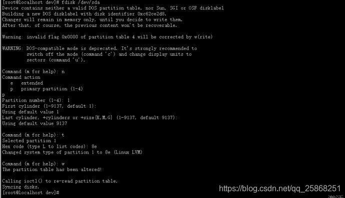 8.对/dev/sda进行分区操作:fdisk /dev/sda: