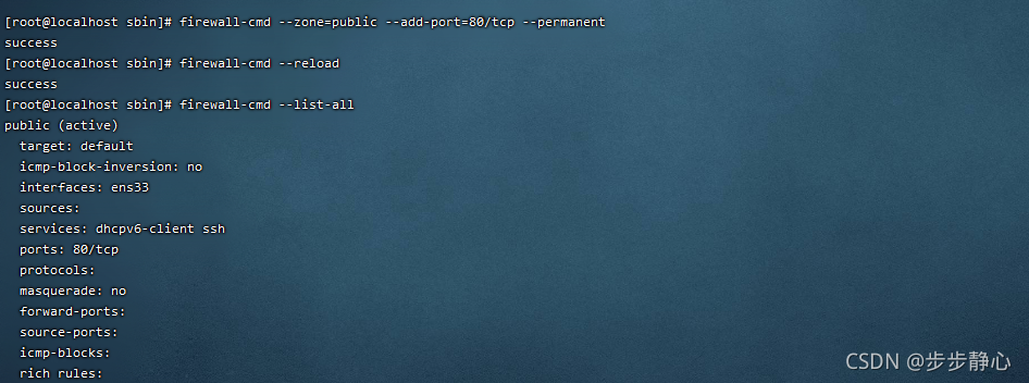 虚拟机CentOS7命令查看防火墙的状态以及开放端口