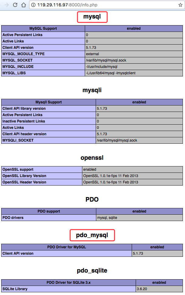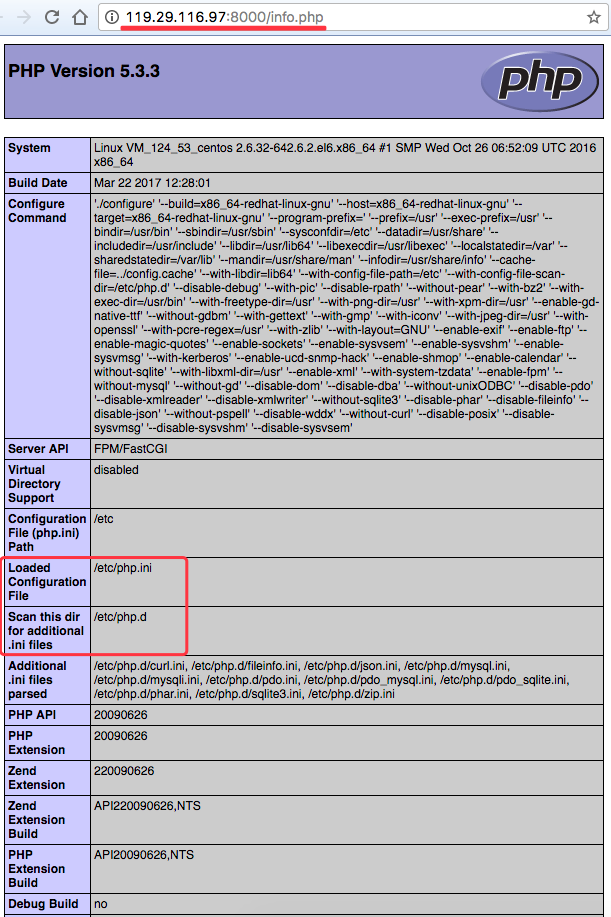 访问 http://119.29.116.97:8000/info.php 可浏览到我们刚刚创建的 info.php 页面了