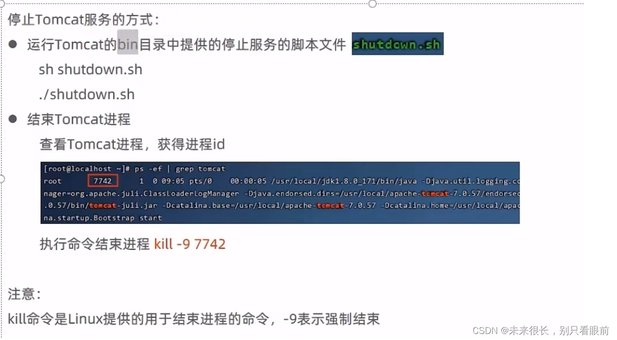 kill -9 7742 # 一般不建议直接强制停止进程,除非正常的手段无法停止进程了