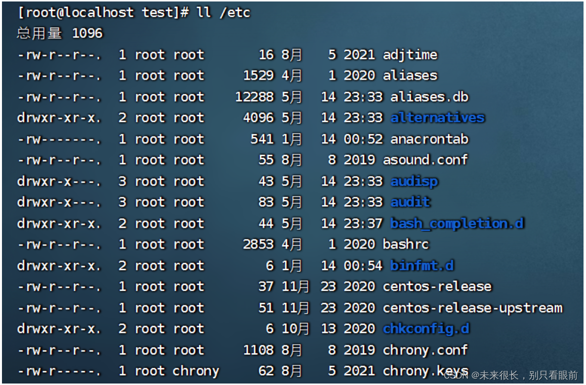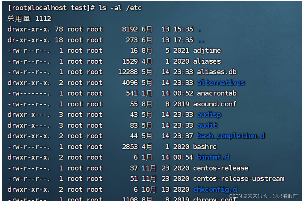 如果指定了dir,那么展示的就是指定dir目录下的所有文件:ls -al /etc
