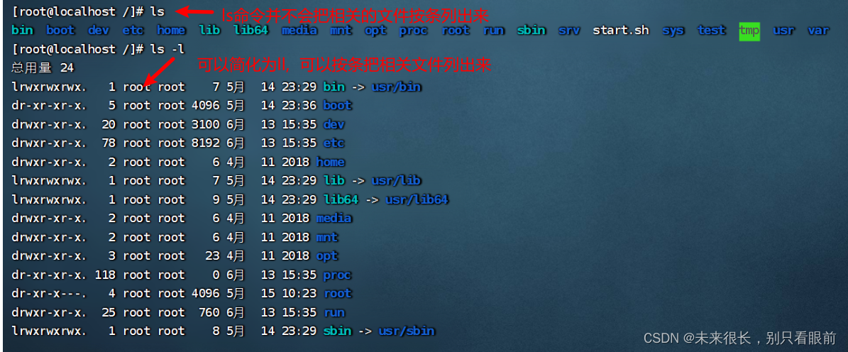案例演示: 使用 ls 与 使用 ls -l 的区别