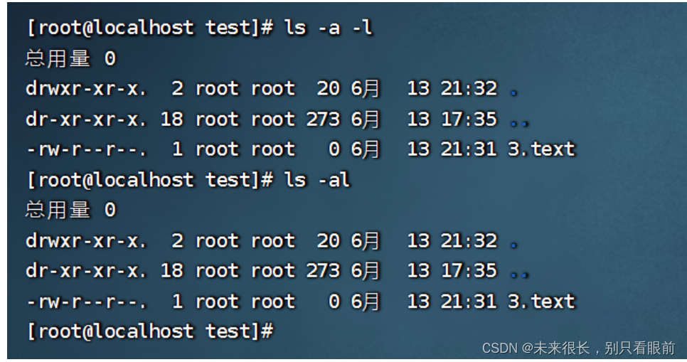 -a 显示所有文件及目录 (.开头的隐藏文件也会列出, 在Linux中隐藏文件是以.开头的)