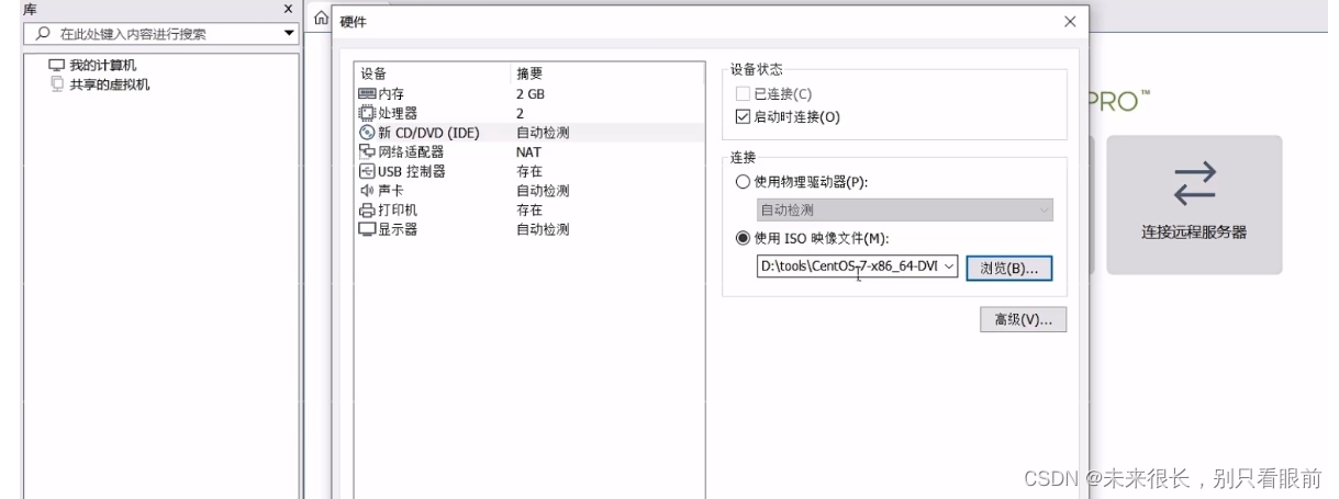③在CD/DVD的配置项中配置镜像的路径;(内存可以根据自己需求设置)