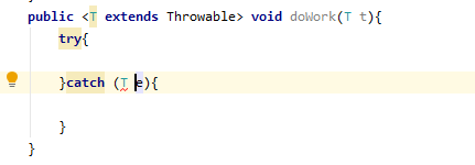 public <T extends Throwable> void doWork(T t) throws T{