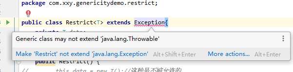 - 泛型类不能继承Exception/Throwable