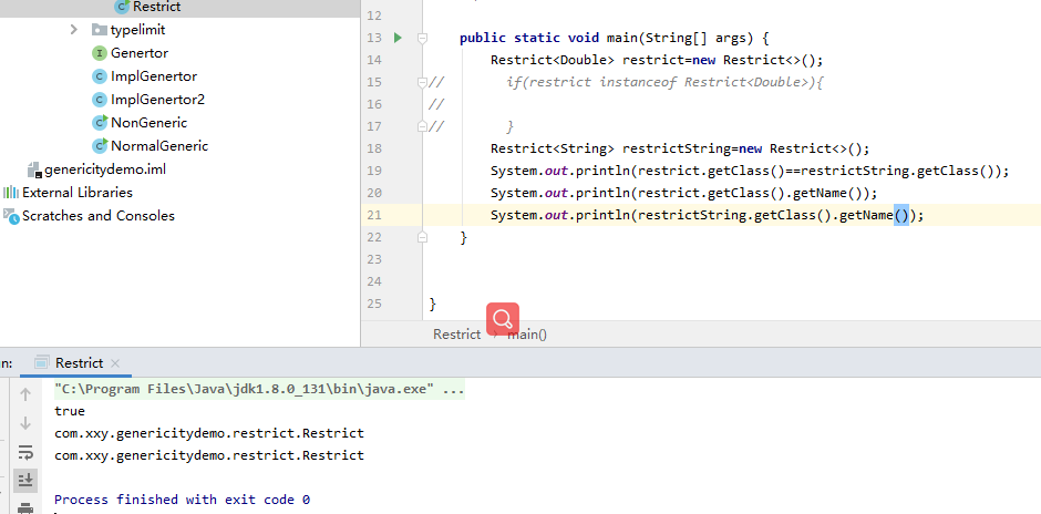 Restrict 是这两个类型的原生类型,getClass的时候也只能获取到原生类型,获取不到泛型类型