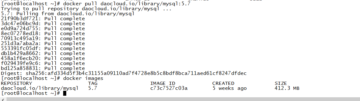 docker pull 从官方下载mysql镜像,速度非常慢,所以就从daocloud下载镜像吧,速度很快。