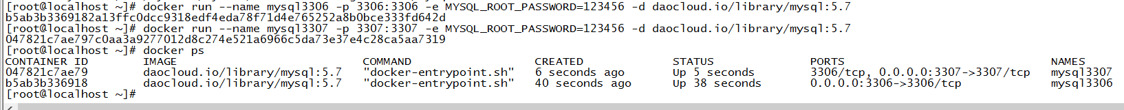 docker run --name mysql3307 -v /mysql-3307.cnf:/etc/mysql/mysql.conf.d/mysql.cnf -p 3307:3306 -e MYSQL_ROOT_PASSWORD=123456 -d daocloud.io/library/mysql:5.7