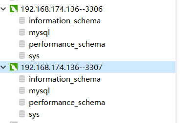 然后navicat上刷新3307,发现3307上也创建有test库了,说明主从同步OK了,可以接着测试创建表、对表的数据进行增删改进行测试