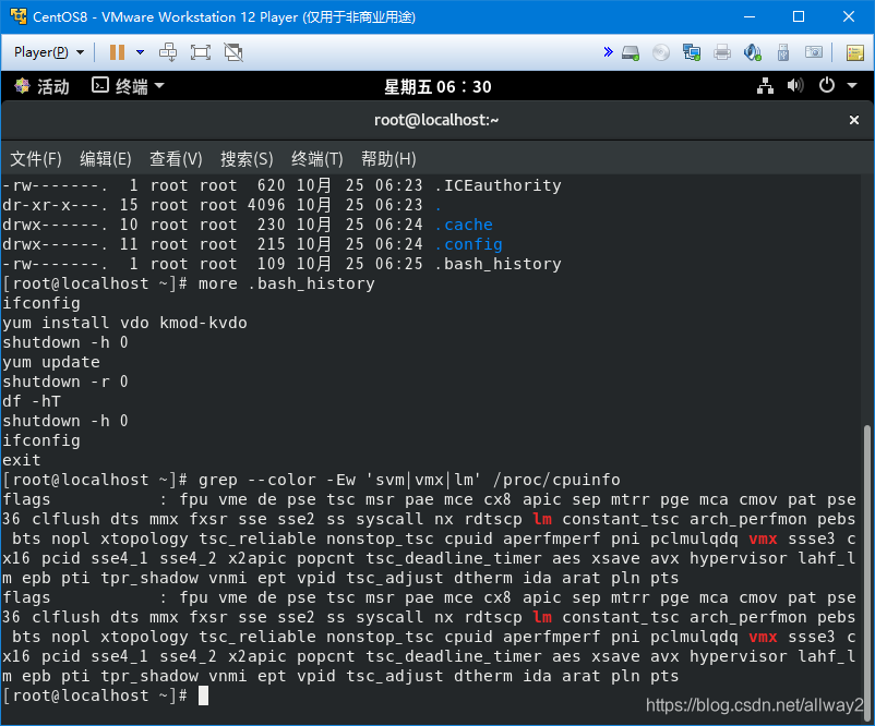 所述svm标志意味着CPU有AMD-V ,vmx标志意味着CPU具有VT-X ,和lm是指64位的支持。