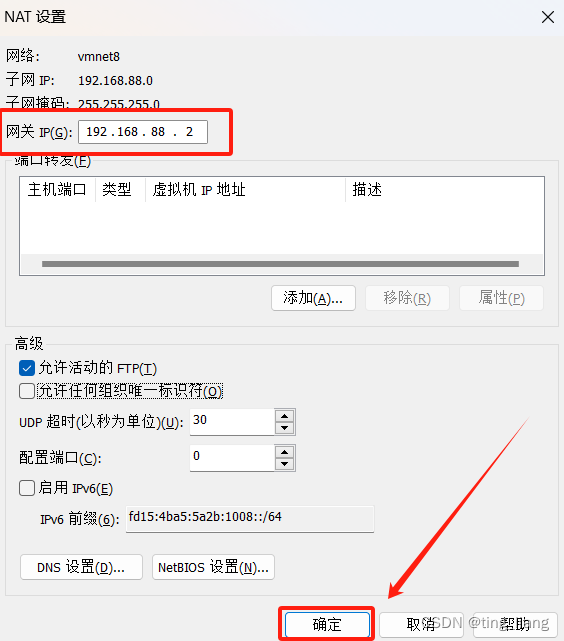 步骤一:在VMware Workstation中配置固定IP地址网关和网段(IP地址的范围)