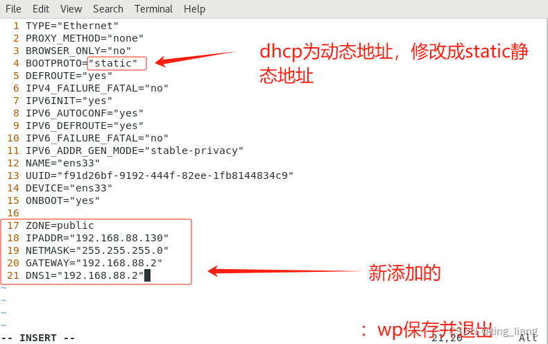步骤二:在Linux系统中手动修改配置文件固定IP