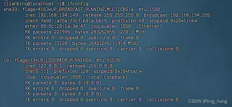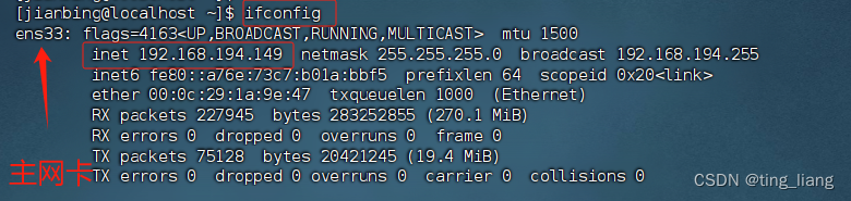 4、可以通过命令:ifconfig,查看本机的ip地址,如无法使用ifconfig命令, 可以安装: um -yinstall net-tools