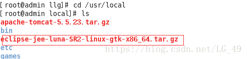 命令执行完毕,我们需要切换到指定路径下,ls查看文件或目录,这时候会发现eclipse目录