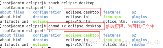 ①使用root权限在eclipse目录下创建文件,使用touch eclipse.desktop命令,并修改权限为可执行