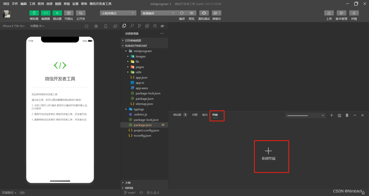 打开终端,在项目目录miniprogram下执行如下命令 。