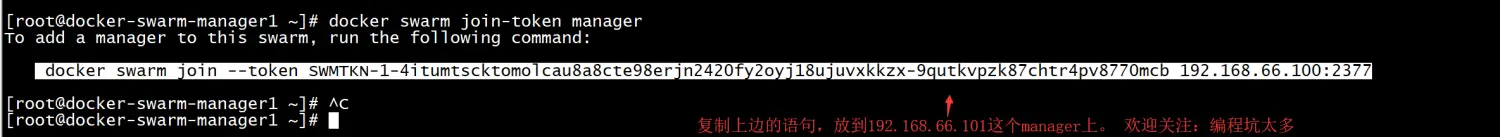 docker swarm join --token SWMTKN-1-4itumtscktomolcau8a8cte98erjn2420fy2oyj18ujuvxkkzx-9qutkvpzk87chtr4pv8770mcb 192.168.66.100:2377