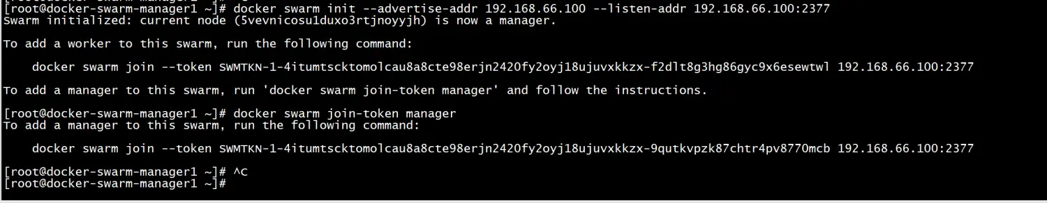 docker swarm init --advertise-addr 192.168.66.100 --listen-addr 192.168.66.100:2377