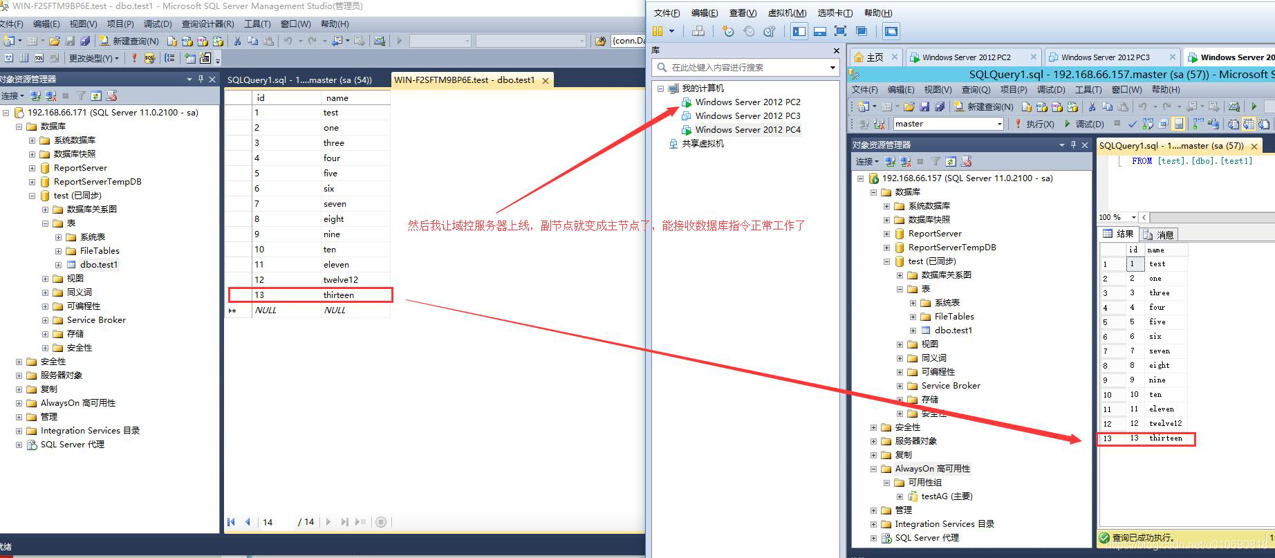 再把域控上线,在线的副节点就变成主节点了,且能正常使用数据库了。