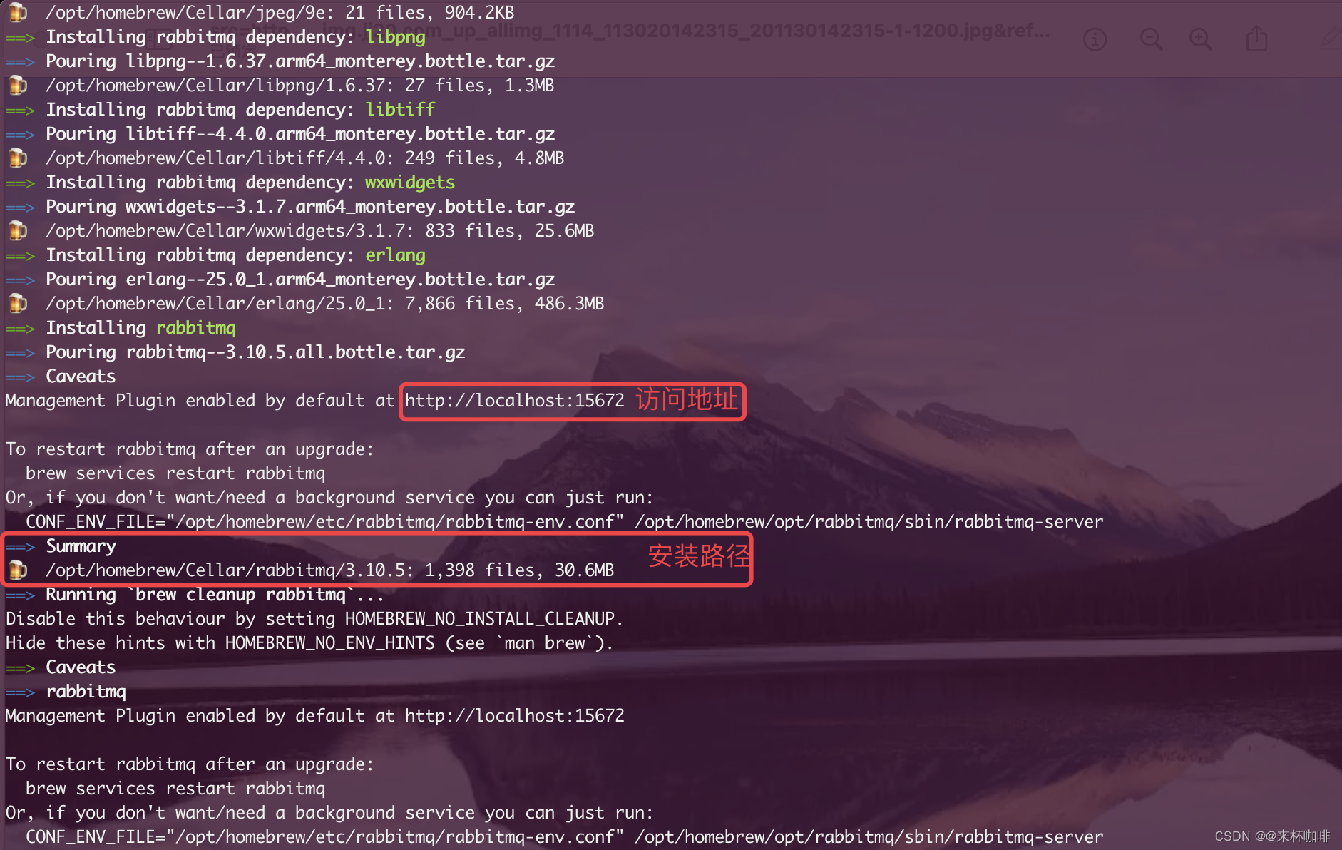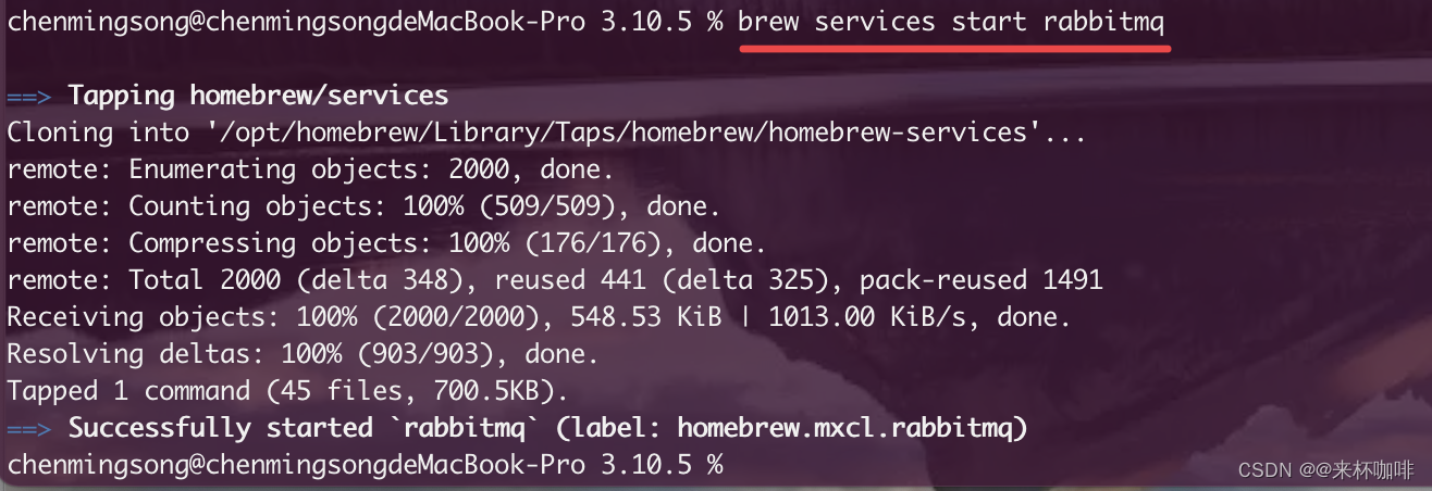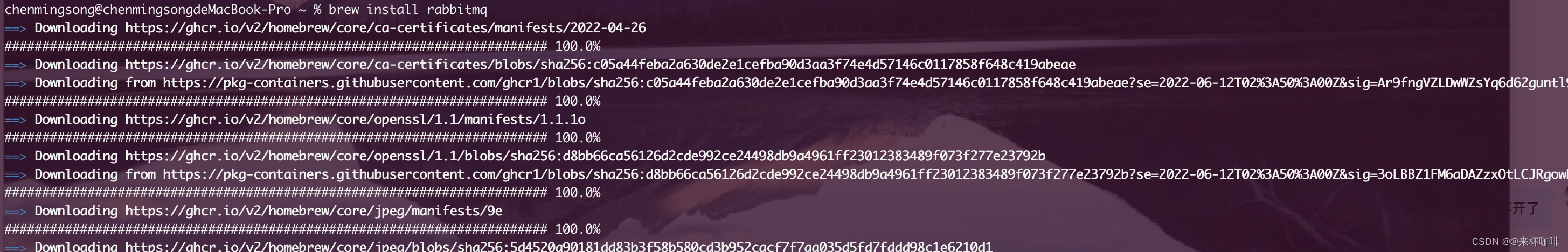 chenmingsong@chenmingsongdeMacBook-Pro ~ % brew install rabbitmq