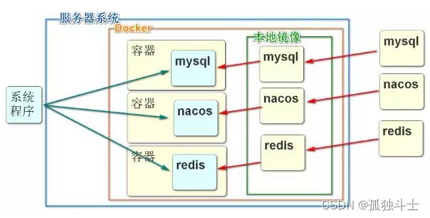 2.镜像服务器(registry):有很多网站收集了很多定制好的镜像, 比如mysql镜像。 我们从这些网站下载这个镜像到本地仓库后,再根据本地仓库的镜像启动出一个容器, 我们的linux中就可以使用这个软件了。