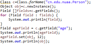 (3)反射起到的作用:一个已经编写好的程序,要添加新的功能。修改源码是非常困难的。我们可以通过反射,把拥有新功能的类加载到内存,然后利用反射获取这个类(属性和方法等),把这个类实现的功能添加到原来的程序中。要注意的是,反射机制是运行时候才产生的。