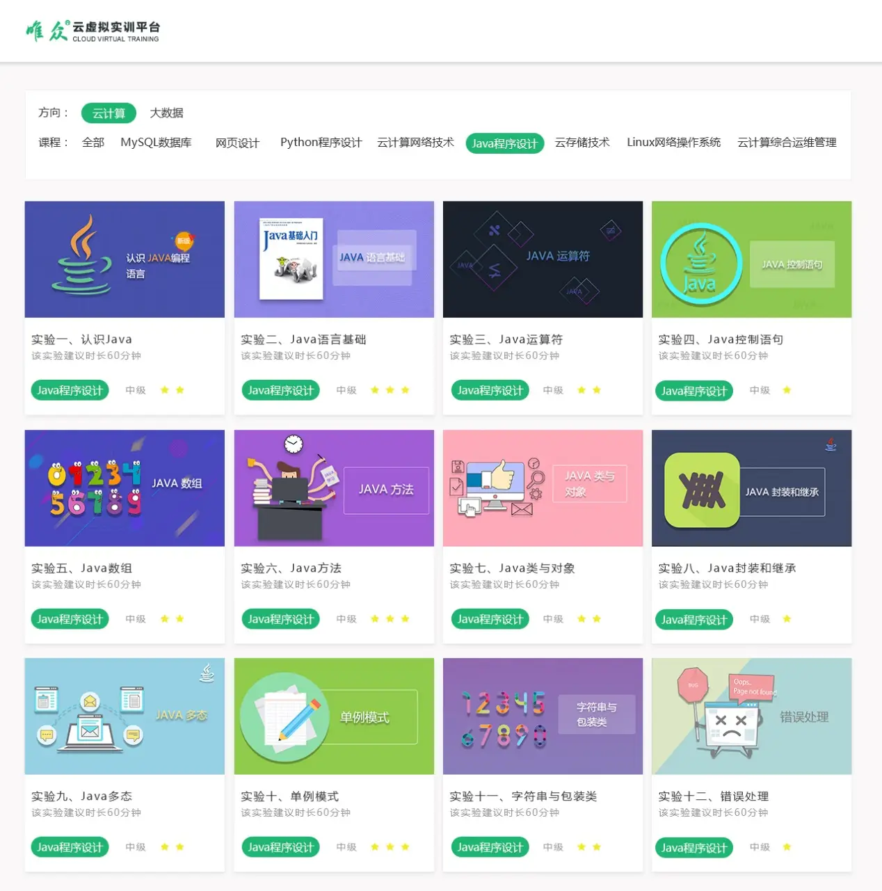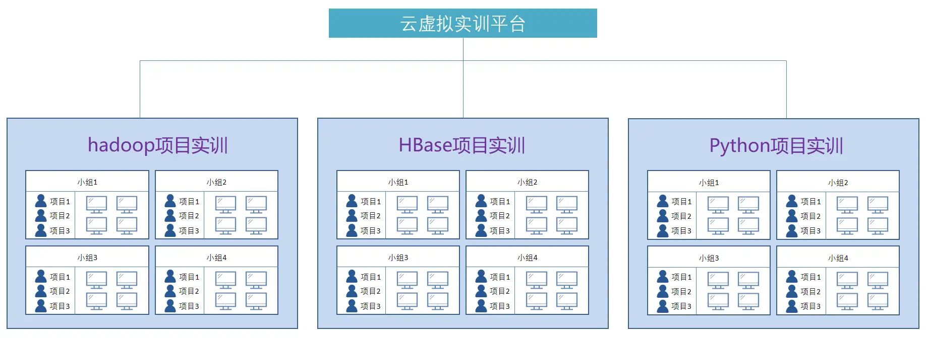 云虚拟实训平台不仅提供了灵活、高效的实训环境,还能够有力支撑学校开展各种形式的项目实训教学活动,可以为学生提供一个完整、稳定的大数据实训环境,包括Hadoop、HDFS、HBase、Hive、Spark等主流的大数据技术组件,并凭借其强大的功能和灵活性,能够有力支撑学校开展各种形式的项目实训教学活动。1、在高职云计算实验室的建设与规划中,首要任务是立足于云计算学科的精准定位,紧密结合高职院校的办学