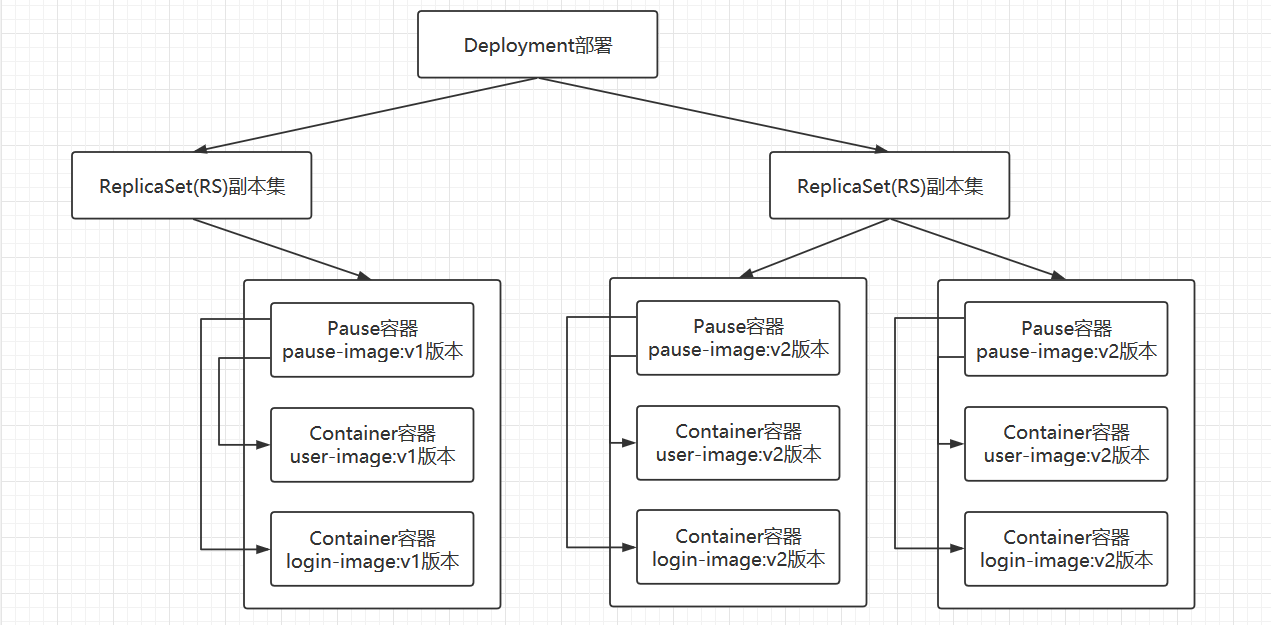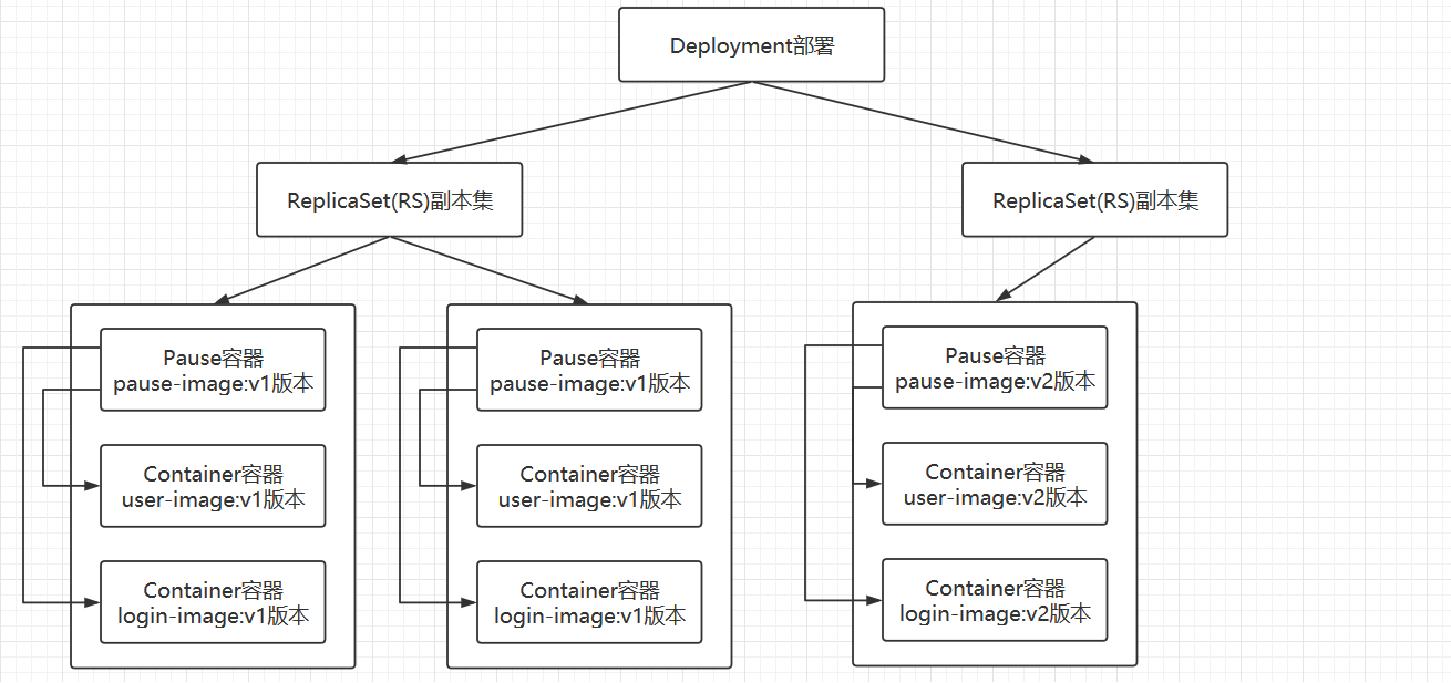 注意:ReplicaSet(RS)、POD的创建,删除都不需要手动管理的,需要手动管理的层面都是Deployment,Deployment会自动的帮我们创建和销毁ReplicaSet(RS),以及整个POD的创建和销毁过程。
