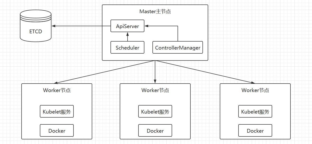 4)、APIServer:Master节点上面的服务,通过APIServer去访问ETCD集群,比如说需要创建一个服务,就需要和k8s集群进行交互。APIServer用来操作k8s的唯一入口,对外提供基于http或者https的api。当ApiServer接收到客户端的请求以后,比如说是创建Deployment的请求,首选,选择一个Worker节点,将POD调度到Worker节点上,如何调度呢,使用的是Scheduler调度器组件。
