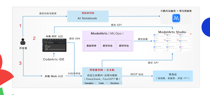 模型层:依托ModelArts实现大模型基座(含DeepSeek等主流模型)部署,支撑行业大模型训练微调;
