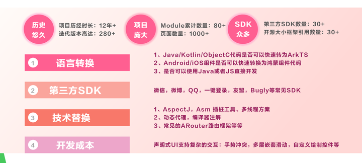面对拥有12年迭代历史、280余版本、80+业务模块及1000+页面的复杂工程,美柚团队联合华为DTSE专家攻克关键转型难题: