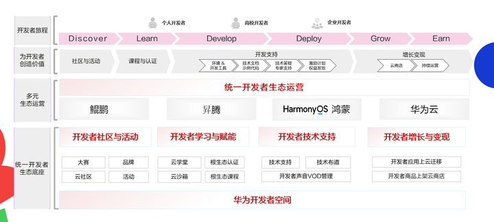 除了技术方向的升级,在运营方面,华为开发者空间也将持续推动开发者社区与生态共建。完成学习平台升级,接入华为云文档能力,提供图文混排课程资源,支持Markdown/PPT/Excel笔记;同时,推动产学研深度联动,与南京大学、上海交大等高校合作,将开发者空间纳入课程体系;最后,也将利用赛事与活动赋能,华为开发者大赛全面采用空间作为支撑平台,同步开展体验官计划促进技术交流。