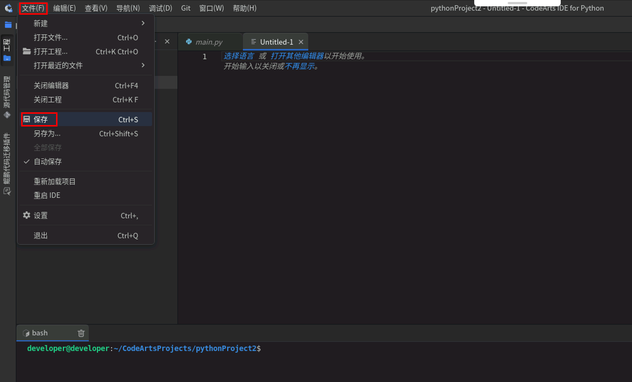 在CodeArts IDE for Python中,点击“文件”->“新建”->“文件”。